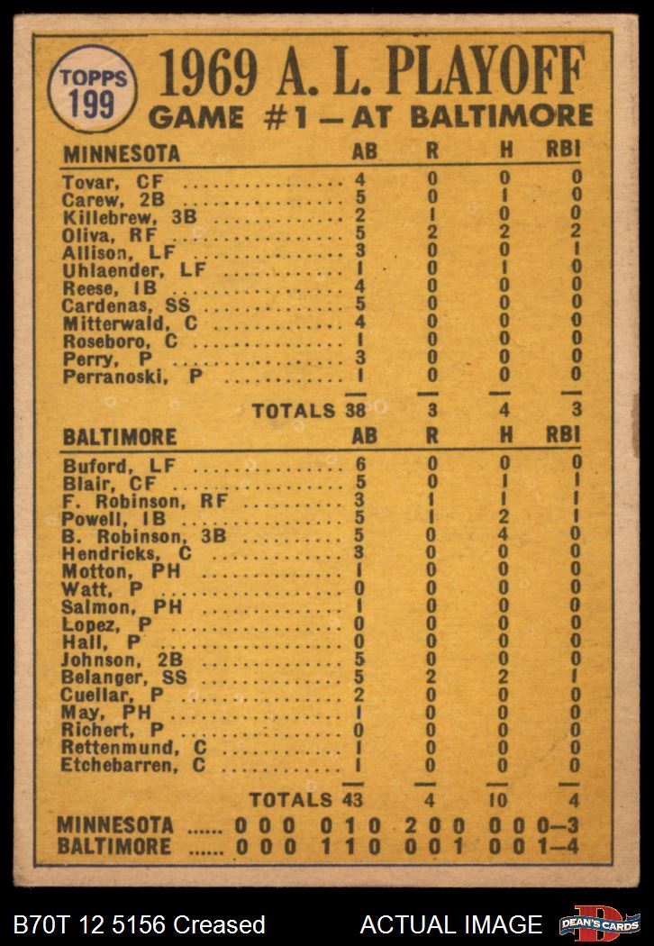 1970 Topps #199 - Mike Cuellar 1969 AL Playoff - Game 1 - Orioles Win Squeeker 3 - VG