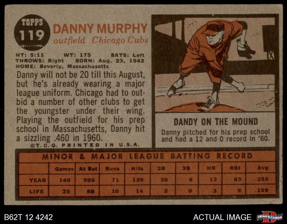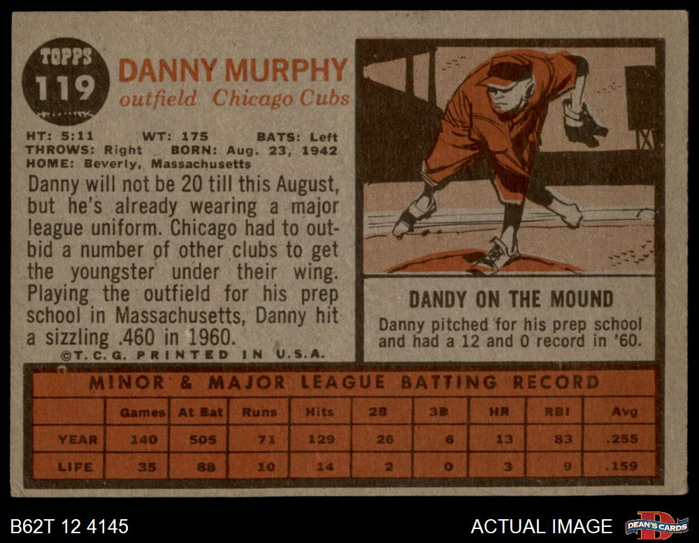 1962 Topps #119 NRM Danny Murphy 2 - GOOD