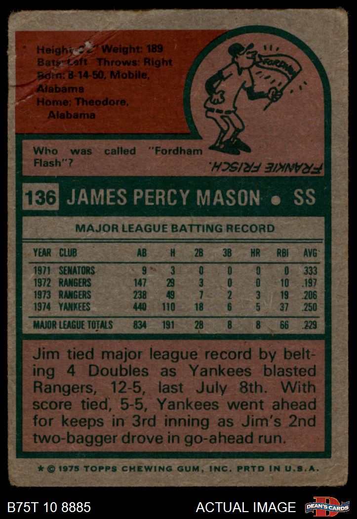 1975 Topps #136 Jim Mason 1 - POOR
