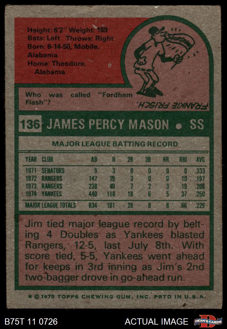 1975 Topps #136 Jim Mason