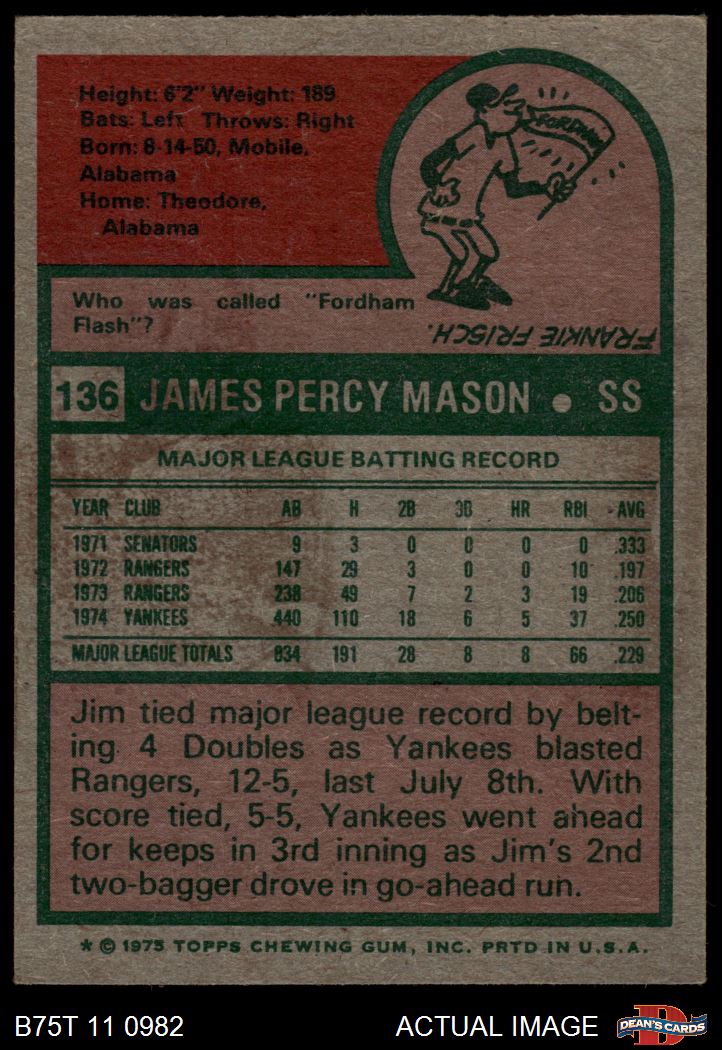1975 Topps #136 Jim Mason 4.5 - VG/EX+