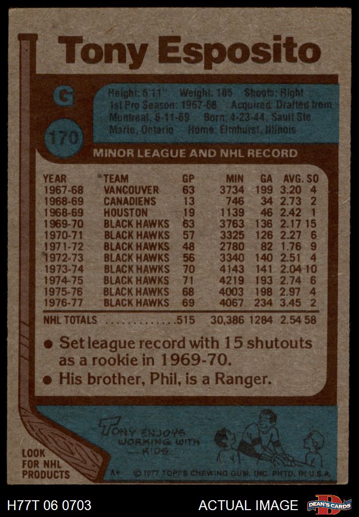 1977 Topps #170 Tony Esposito