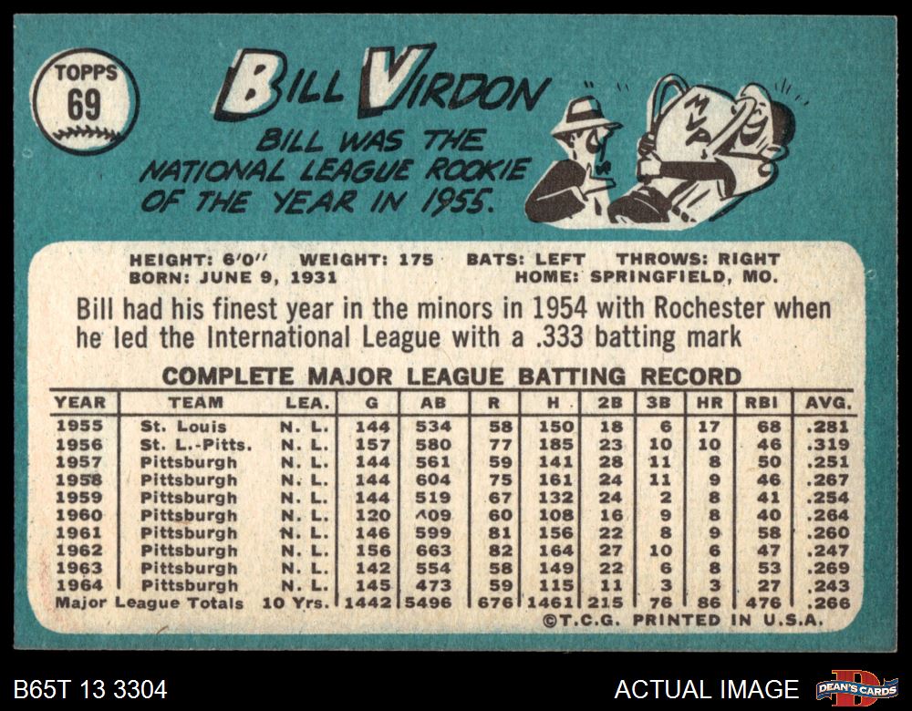 1965 Topps #69 Bill Virdon