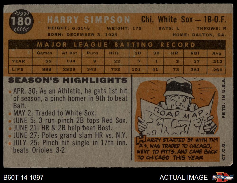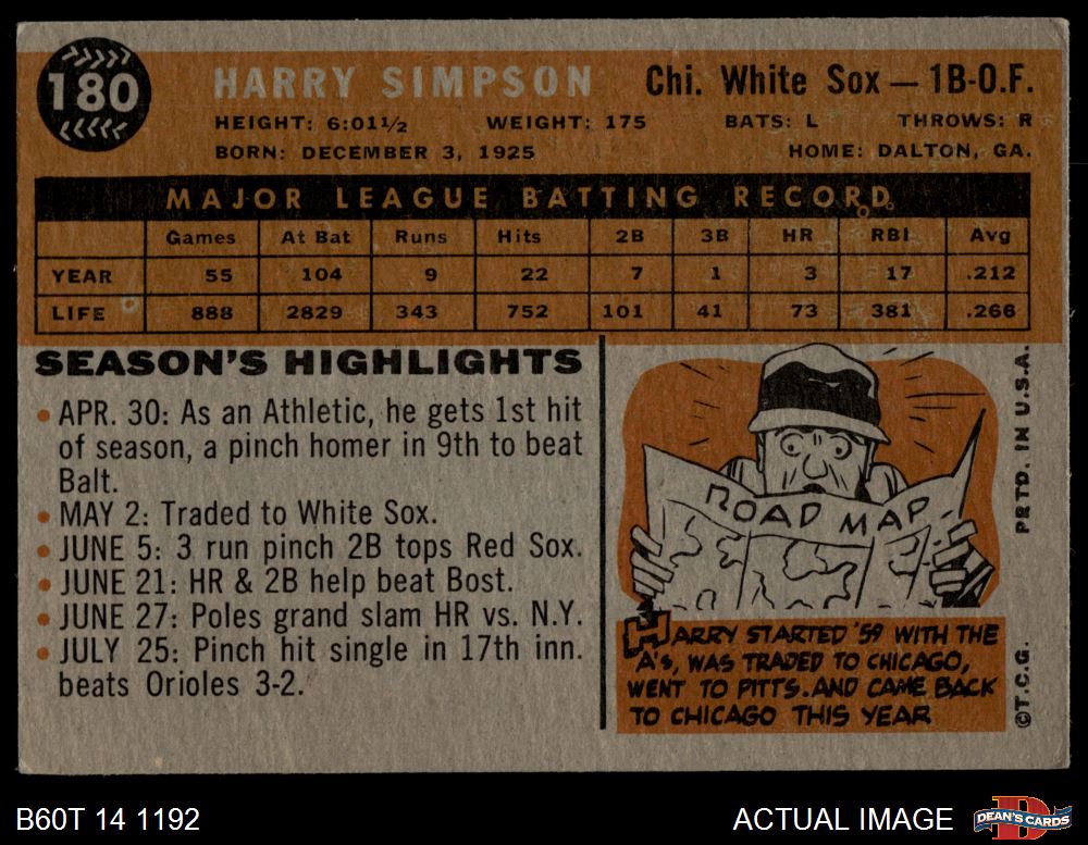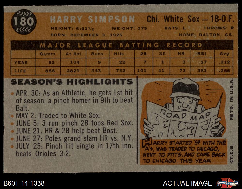 1960 Topps #180 Harry Simpson