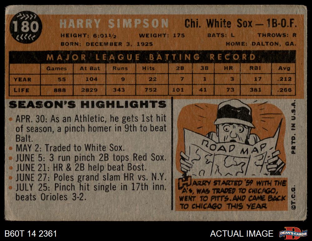 1960 Topps #180 Harry Simpson Front Thumbnail