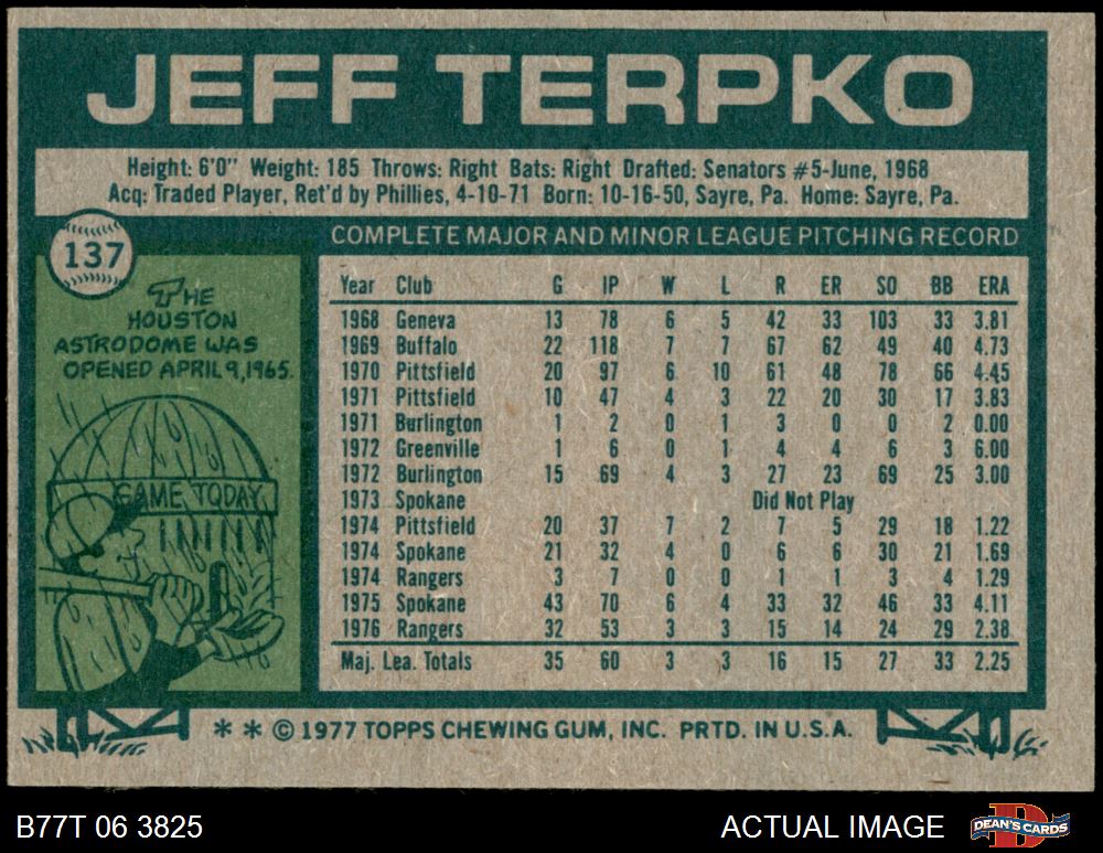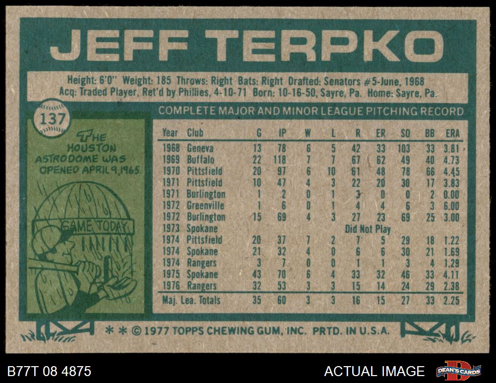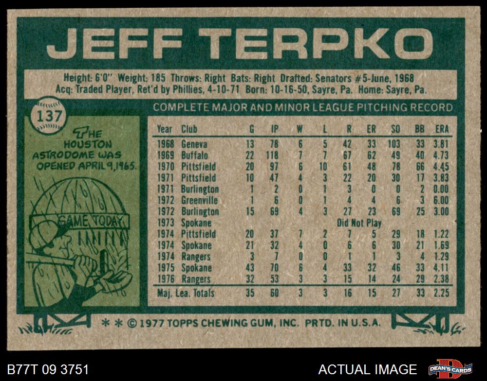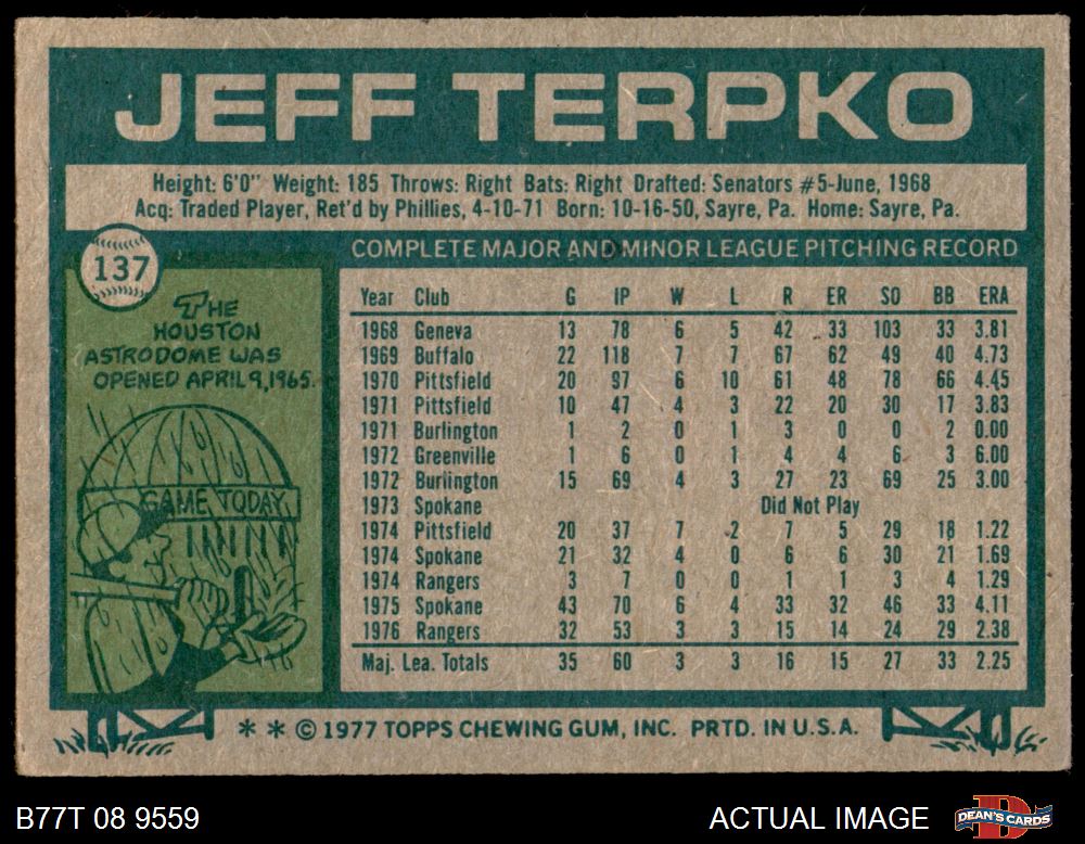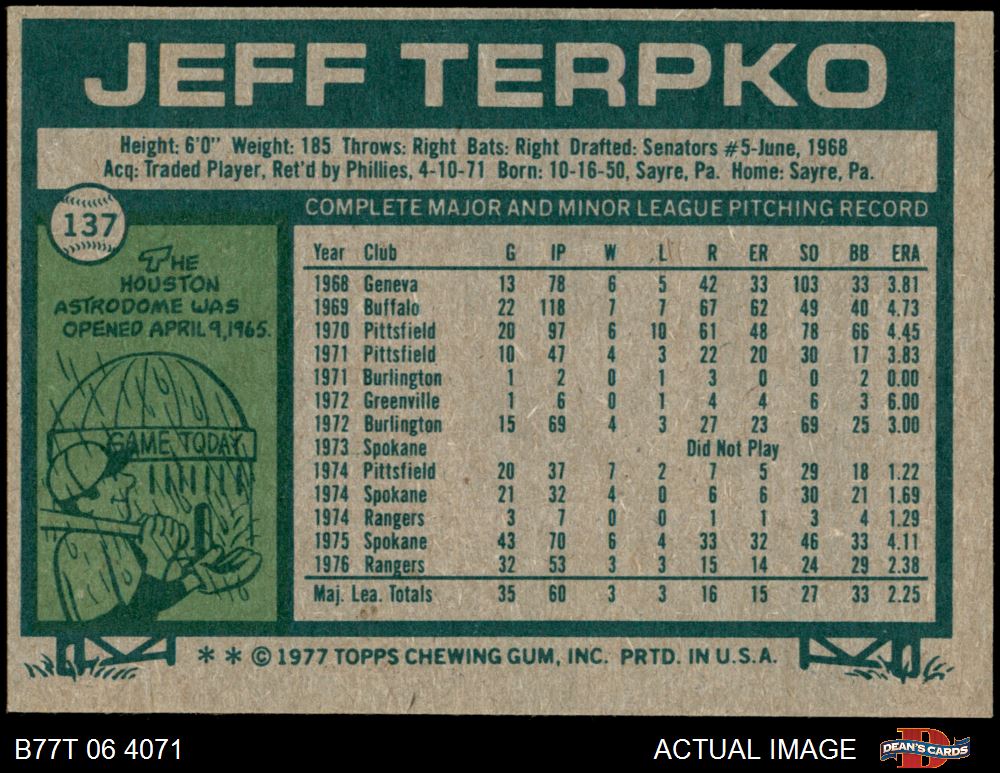 1977 Topps #137 Jeff Terpko