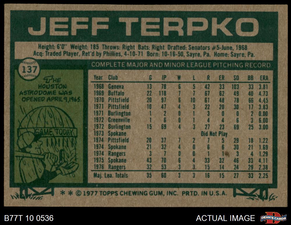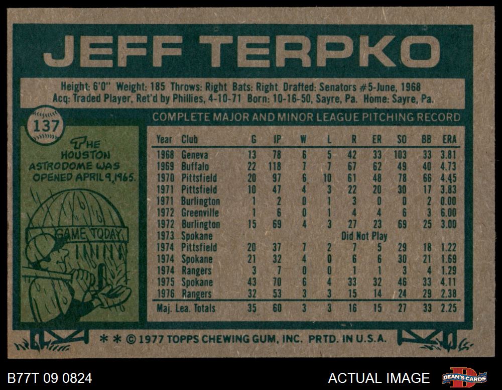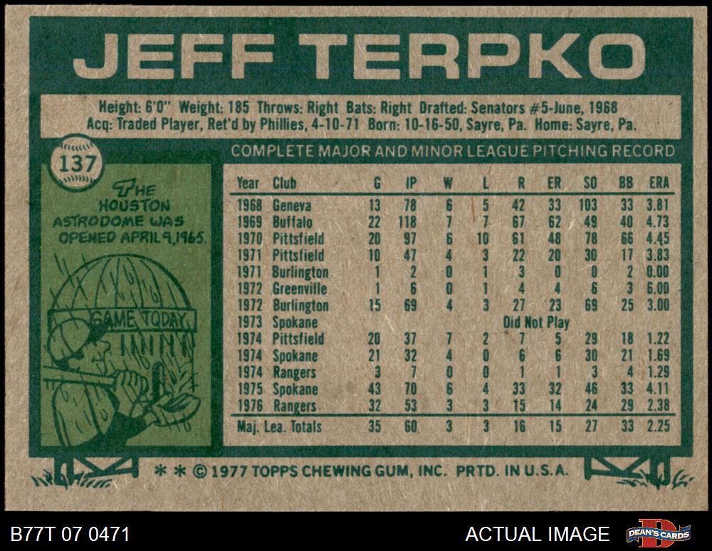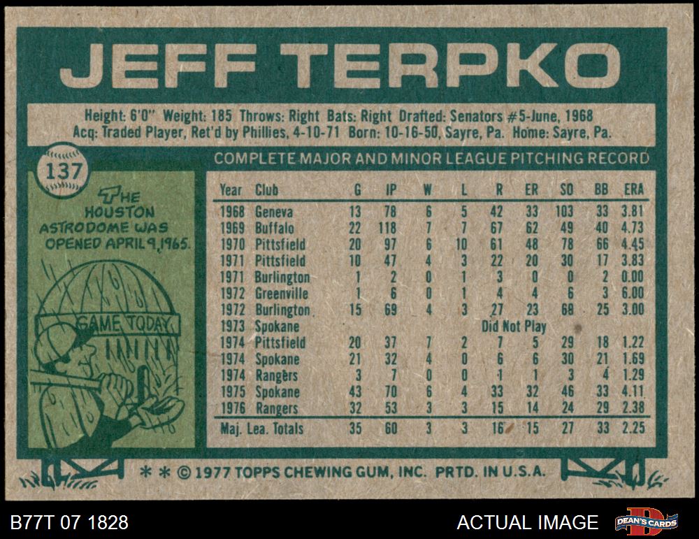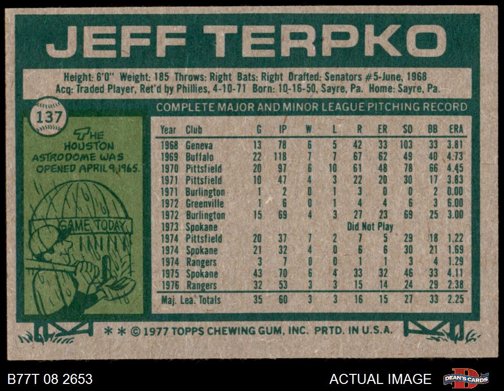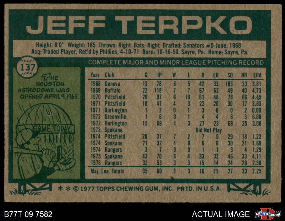 1977 Topps #137 Jeff Terpko