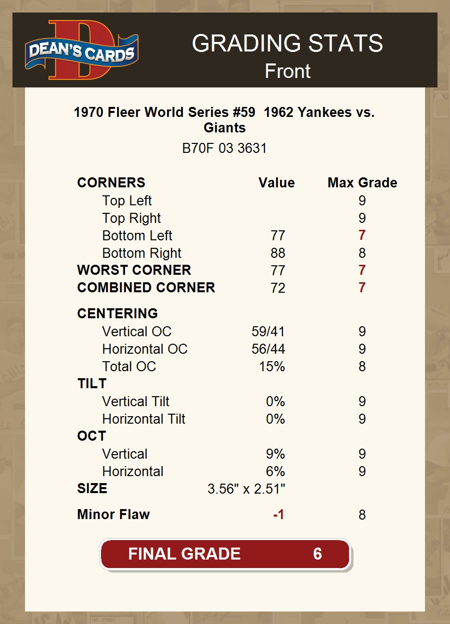 1970 Fleer World Series #59 1962 Yankees vs. Giants 6 - EX/MT