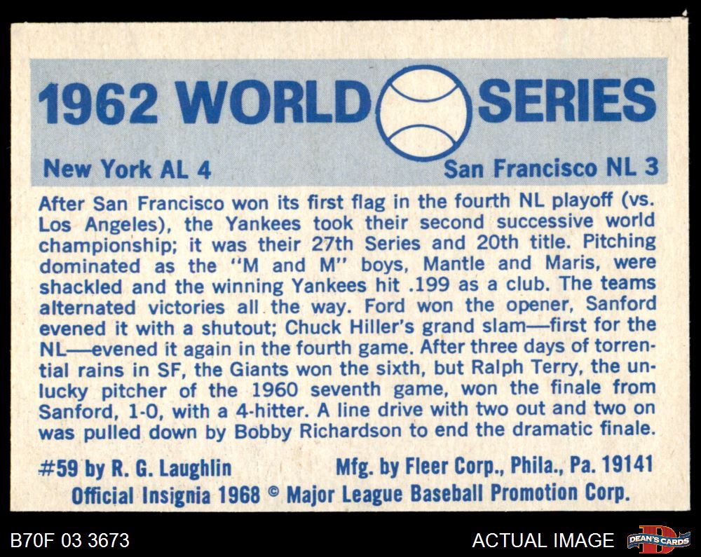 1970 Fleer World Series #59 1962 Yankees vs. Giants 7 - NM