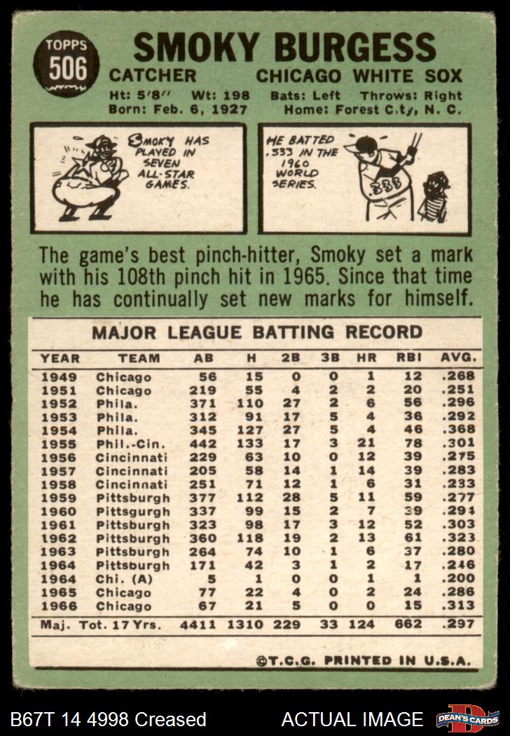 1967 Topps #506 Smoky Burgess 2 - GOOD