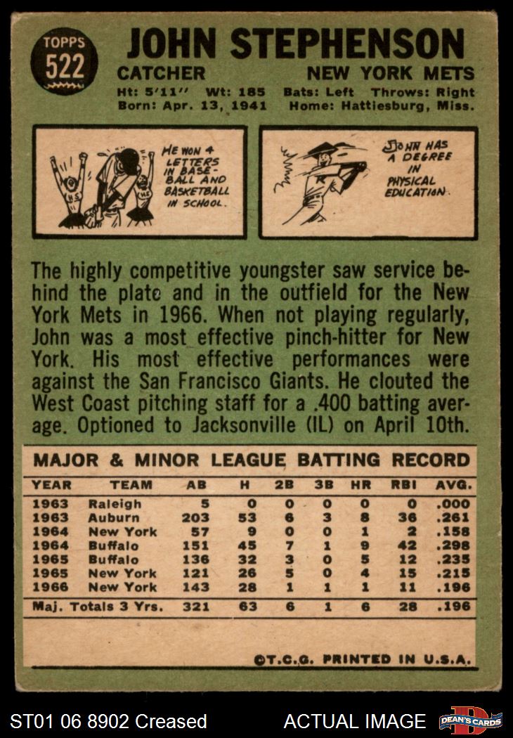 1967 Topps #522 John Stephenson 2 - GOOD