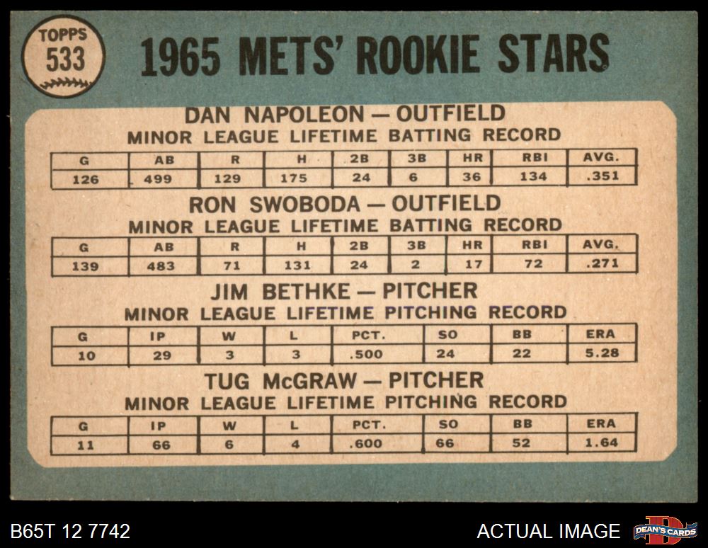 1965 Topps #533 - Tug McGraw / Ron Swoboda / Jim Bethke / Dan Napoleon Mets Rookies 2 - GOOD