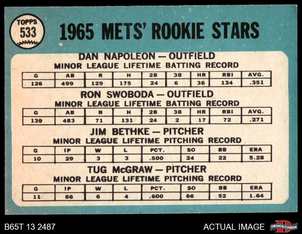 1965 Topps #533 - Tug McGraw / Ron Swoboda / Jim Bethke / Dan Napoleon Mets Rookies 4.5 - VG/EX+