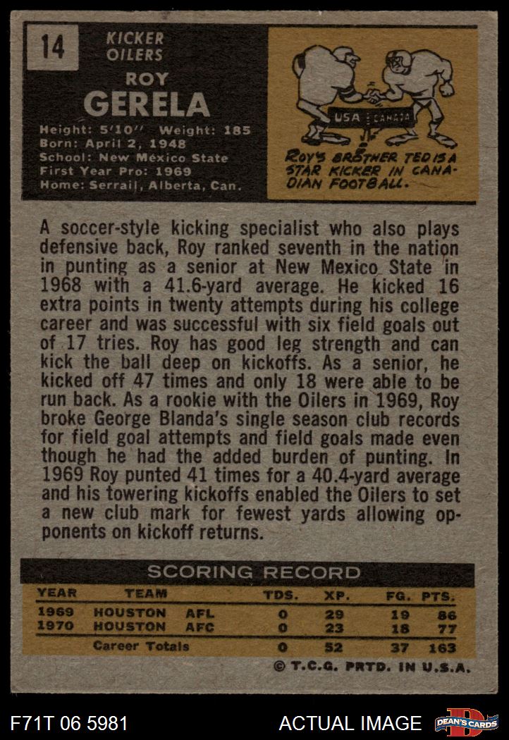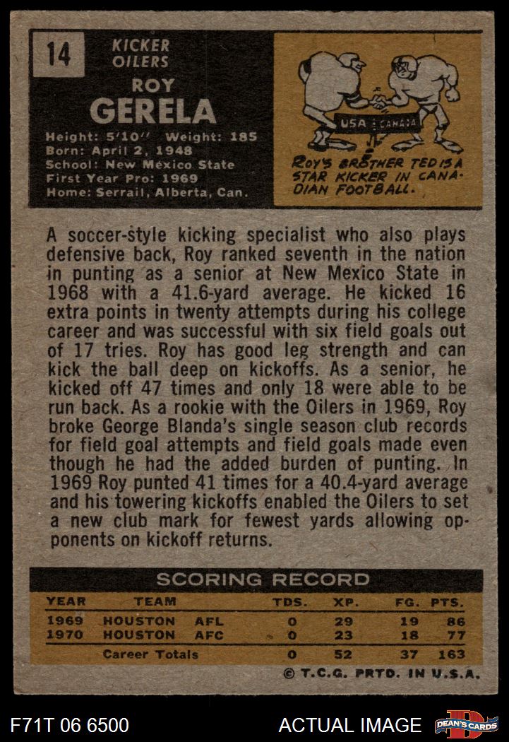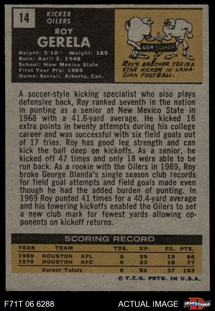 1971 Topps #14 Roy Gerela 6 - EX/MT