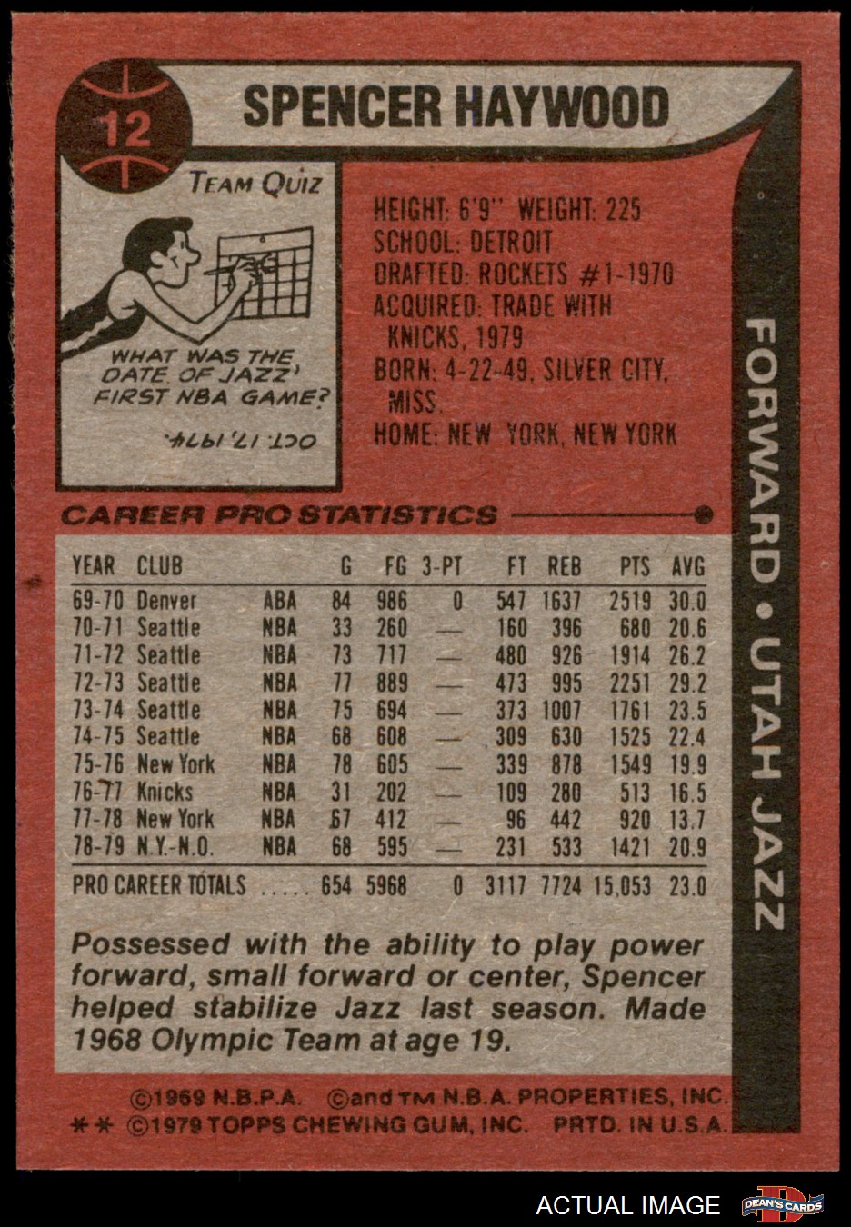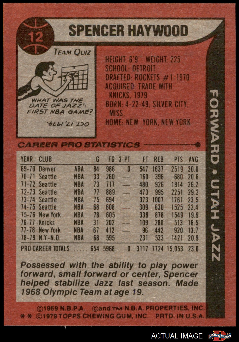 1979 Topps #12 Spencer Haywood 8 - NM/MT