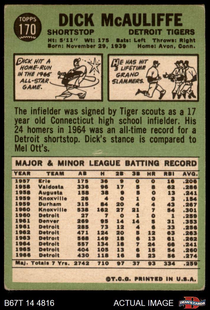 1967 Topps #170 Dick McAuliffe Front Thumbnail