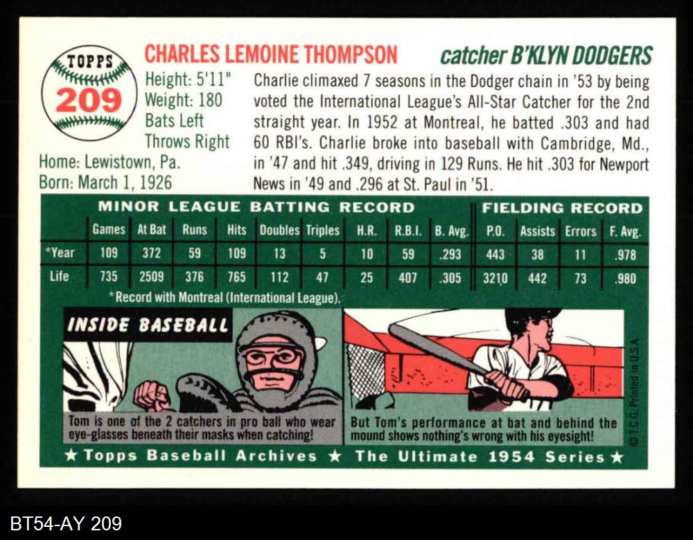 1954 Topps Archives #209 Charlie Thompson 8 - NM/MT