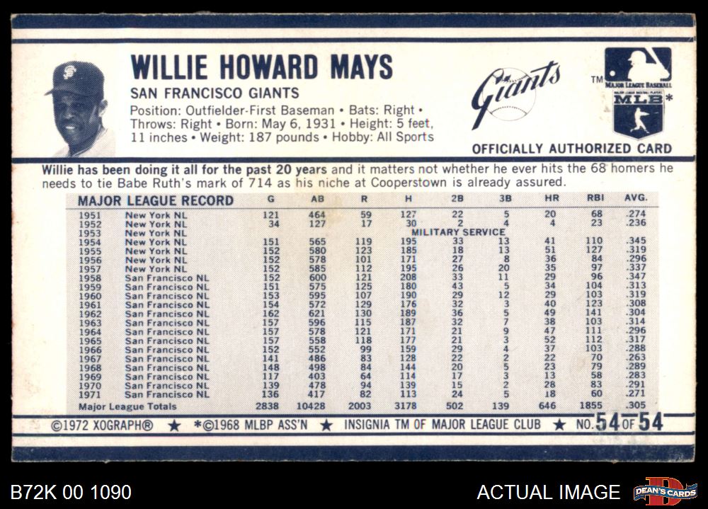1972 Kellogg's #54 ERR Willie Mays 7 - NM