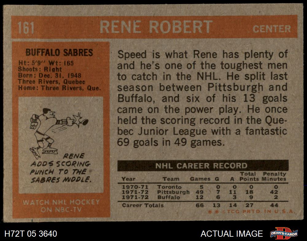 1972 Topps #161 Rene Robert 5 - EX