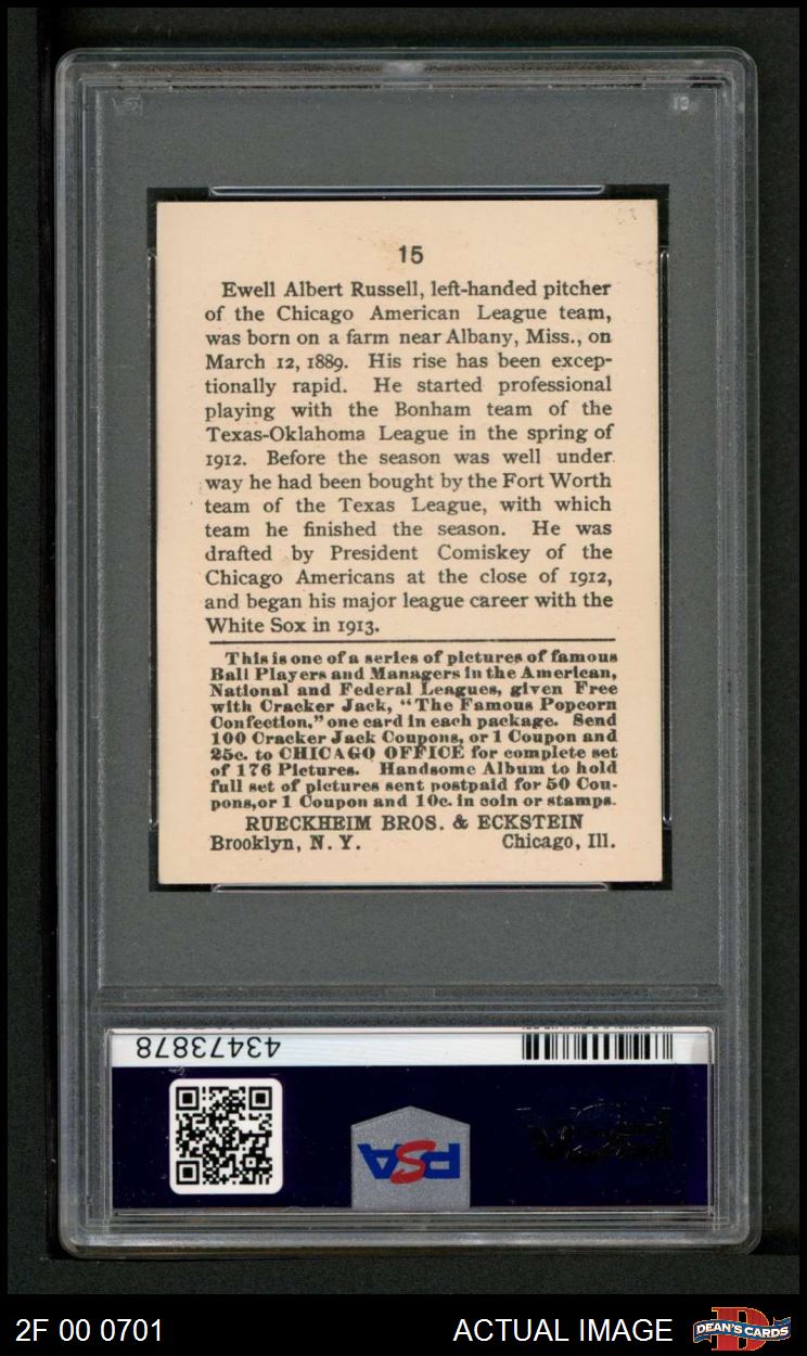 1915 Cracker Jack #15 Reb Russell PSA 6 - EX/MT
