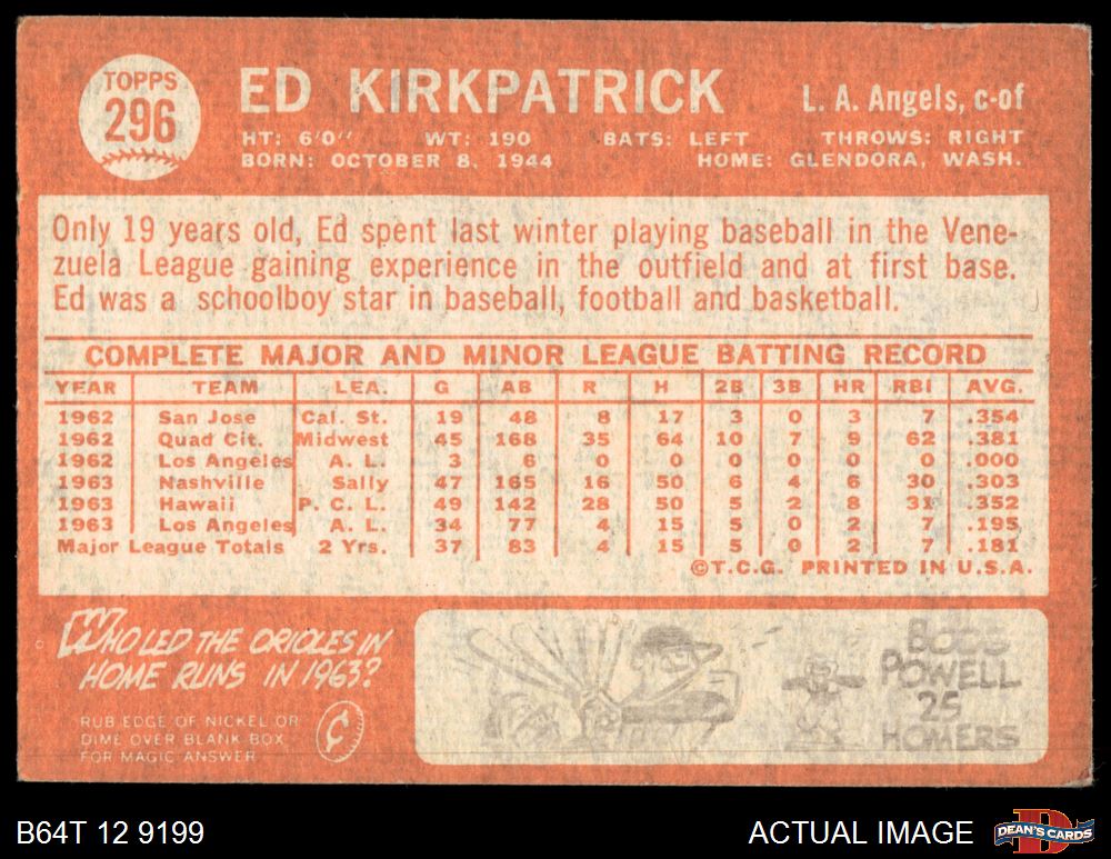 1964 Topps #296 Ed Kirkpatrick 2 - GOOD
