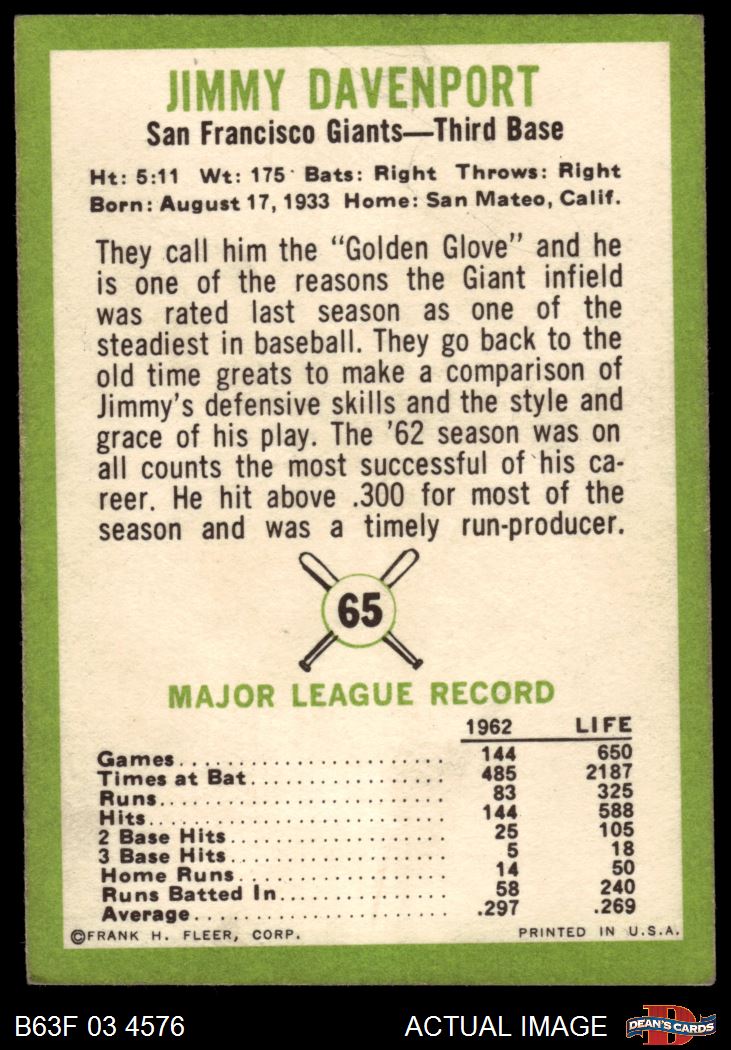 1963 Fleer #65 Jim Davenport 4 - VG/EX