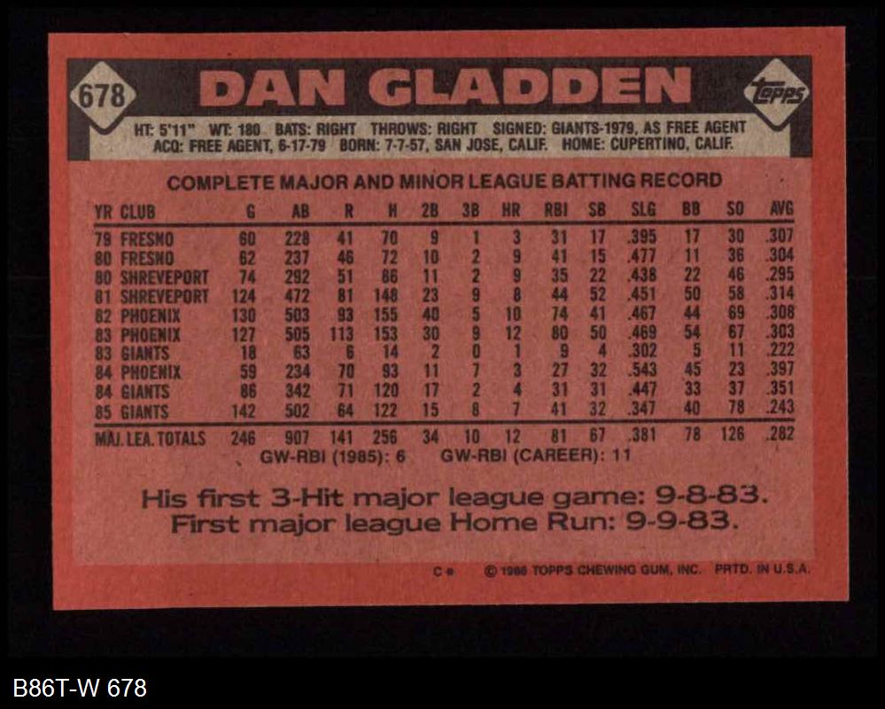 1986 Topps #678 Dan Gladden