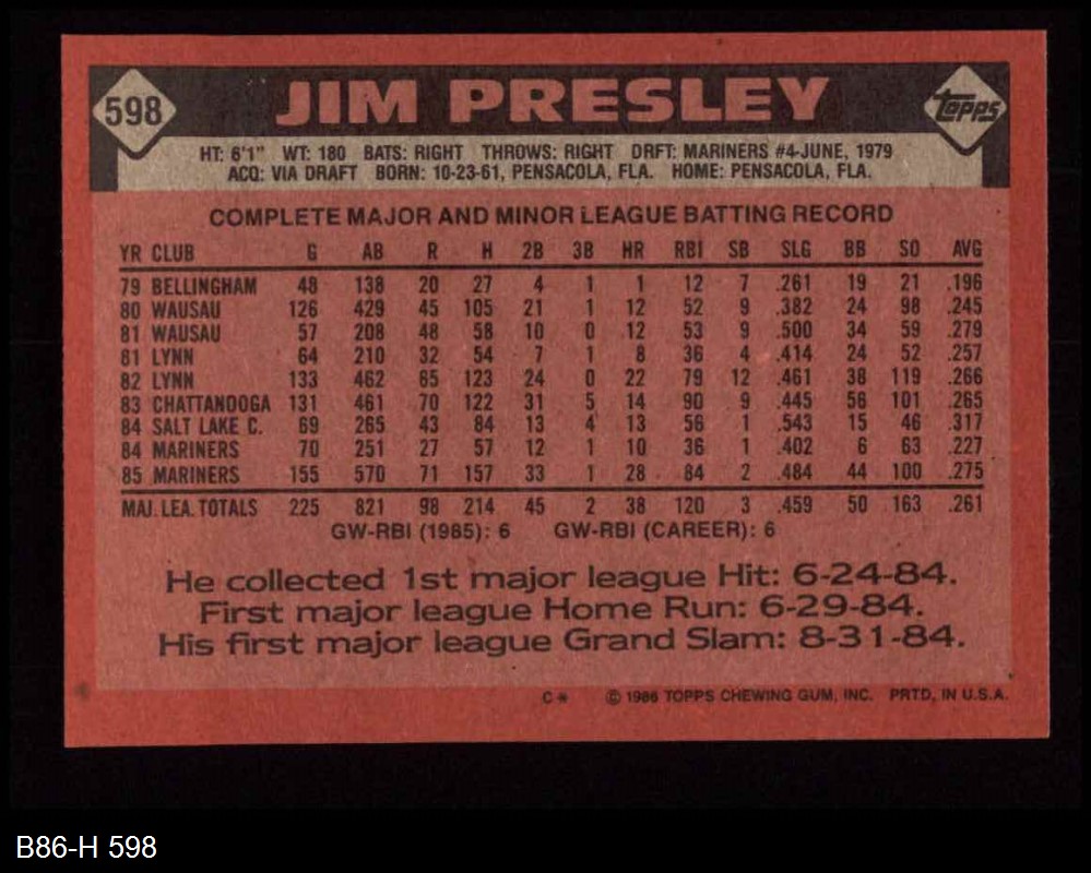 1986 Topps Baseball Cards (4,655 available)1986 Topps Mariners (257 available)