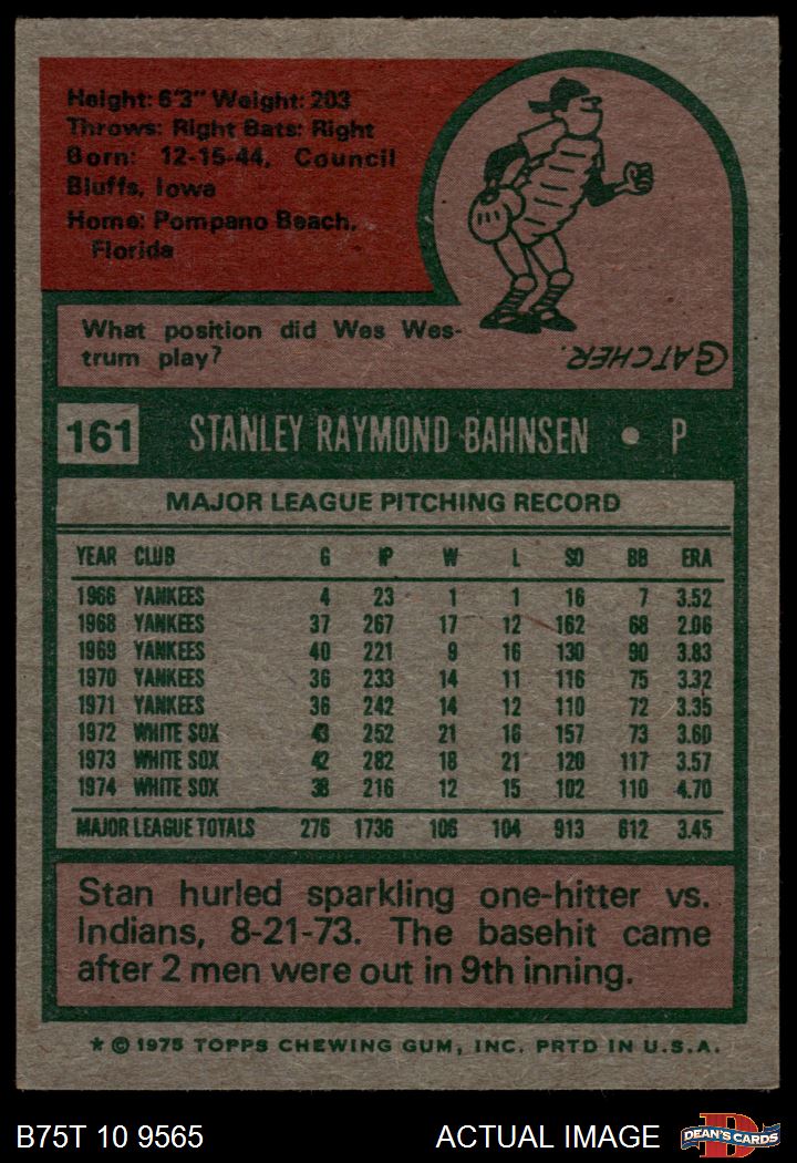 1975 Topps #161 Stan Bahnsen 5.5 - EX+