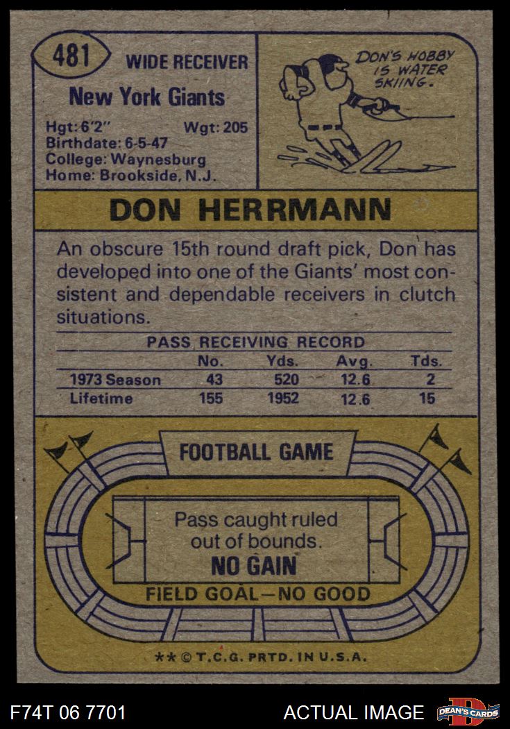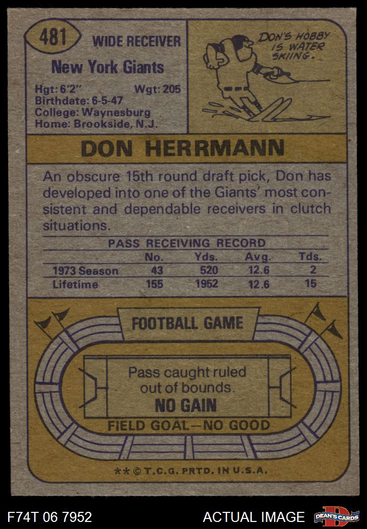 1974 Topps #481 Don Herrmann