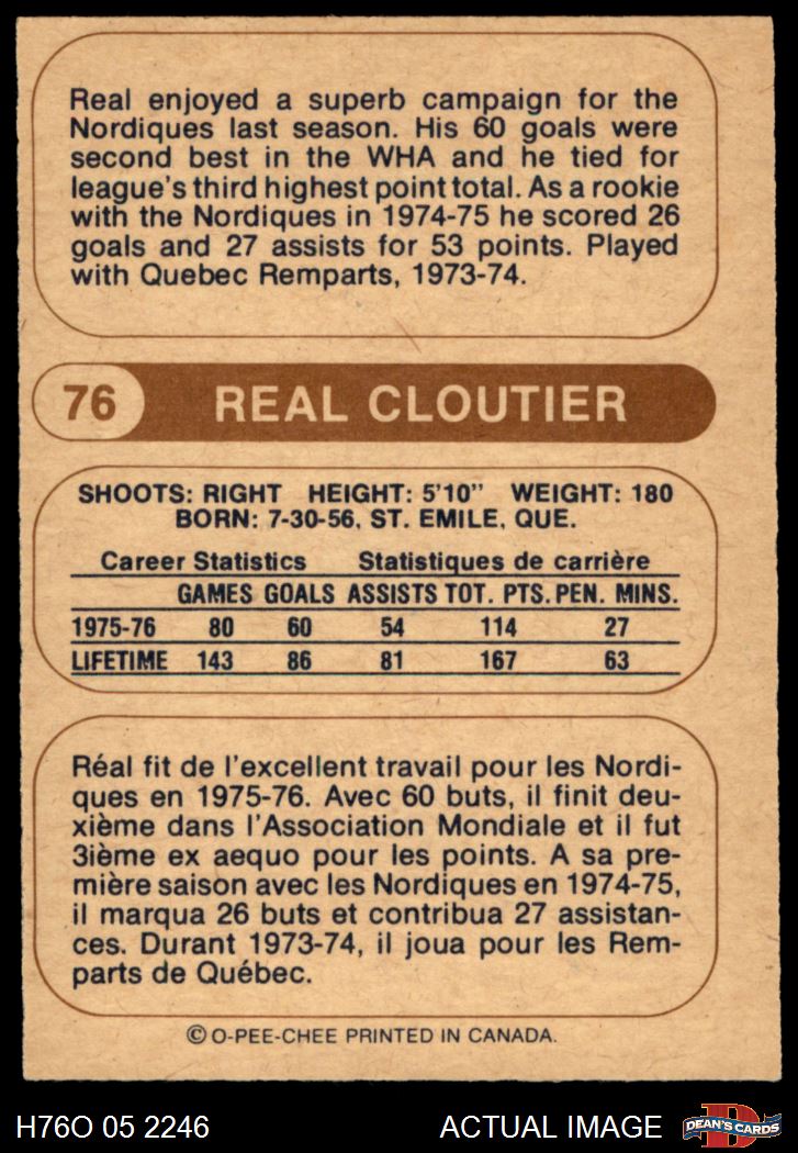 1976 O-Pee-Chee WHA #76 Real Cloutier 6 - EX/MT