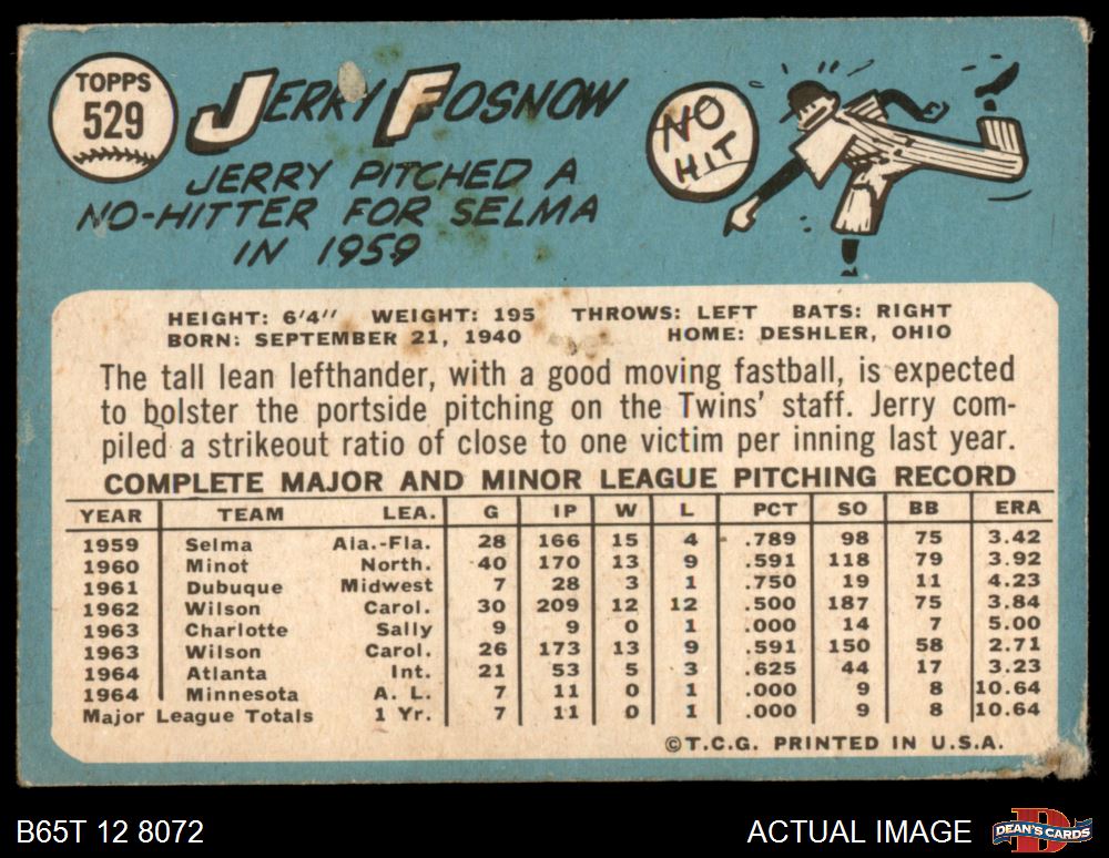 1965 Topps #529 Jerry Fosnow 1 - POOR