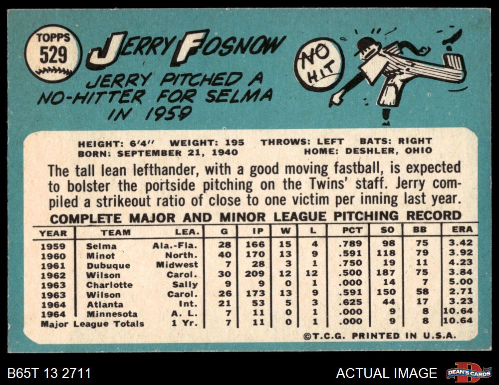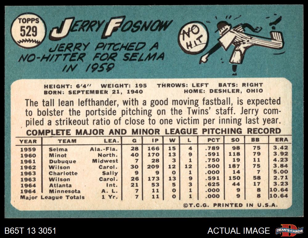 1965 Topps #529 Jerry Fosnow