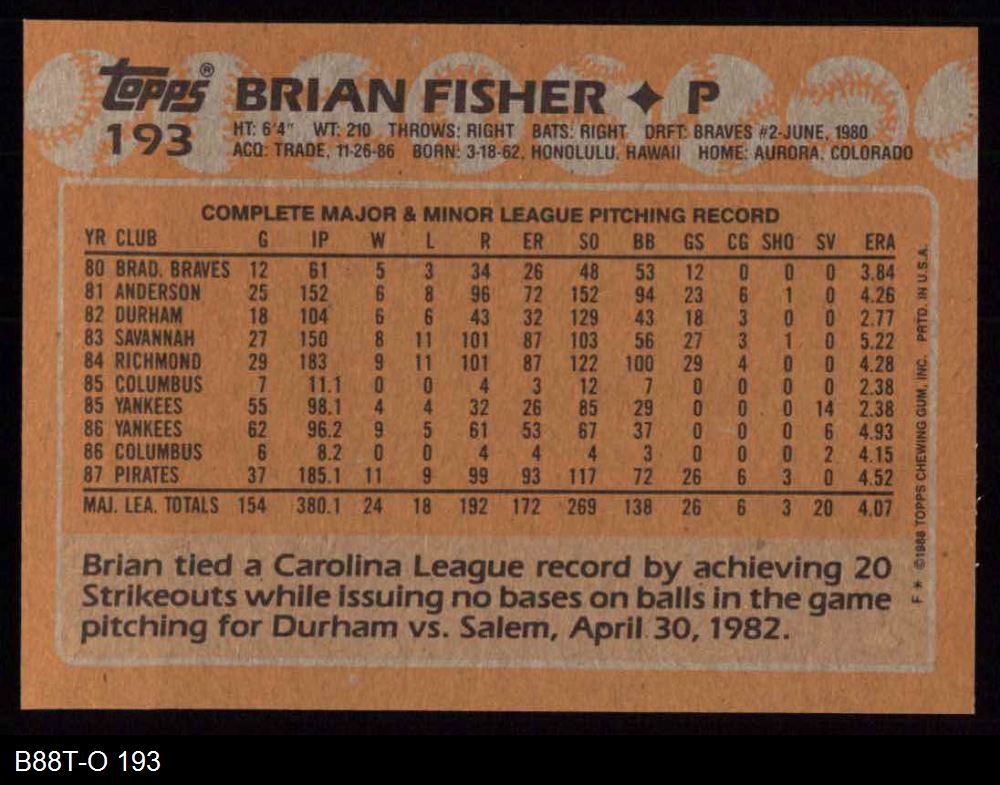 1988 Topps #193 Brian Fisher 8 - NM/MT