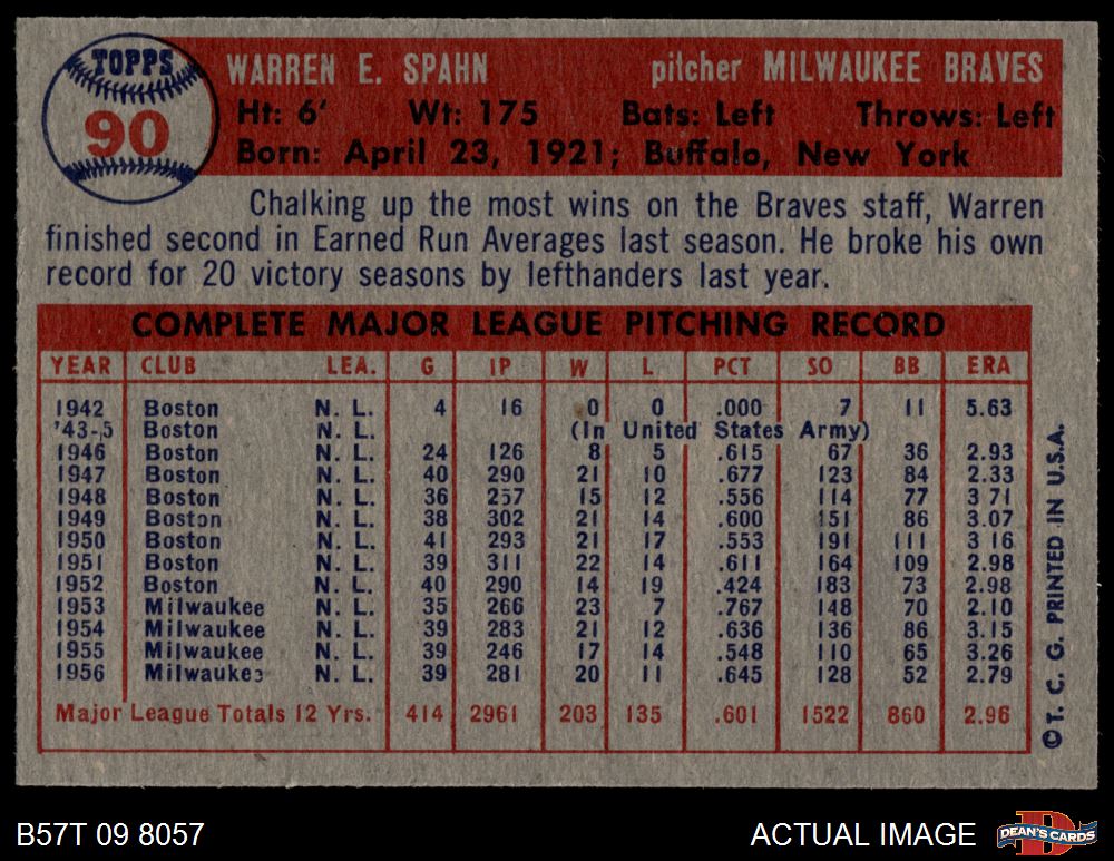 1957 Topps #90 Warren Spahn 6 - EX/MT