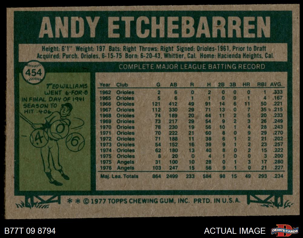 1977 Topps #454 Andy Etchebarren 4 - VG/EX