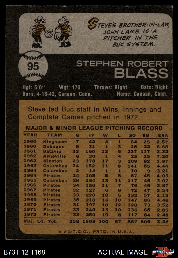1973 Topps #95 Steve Blass 4 - VG/EX