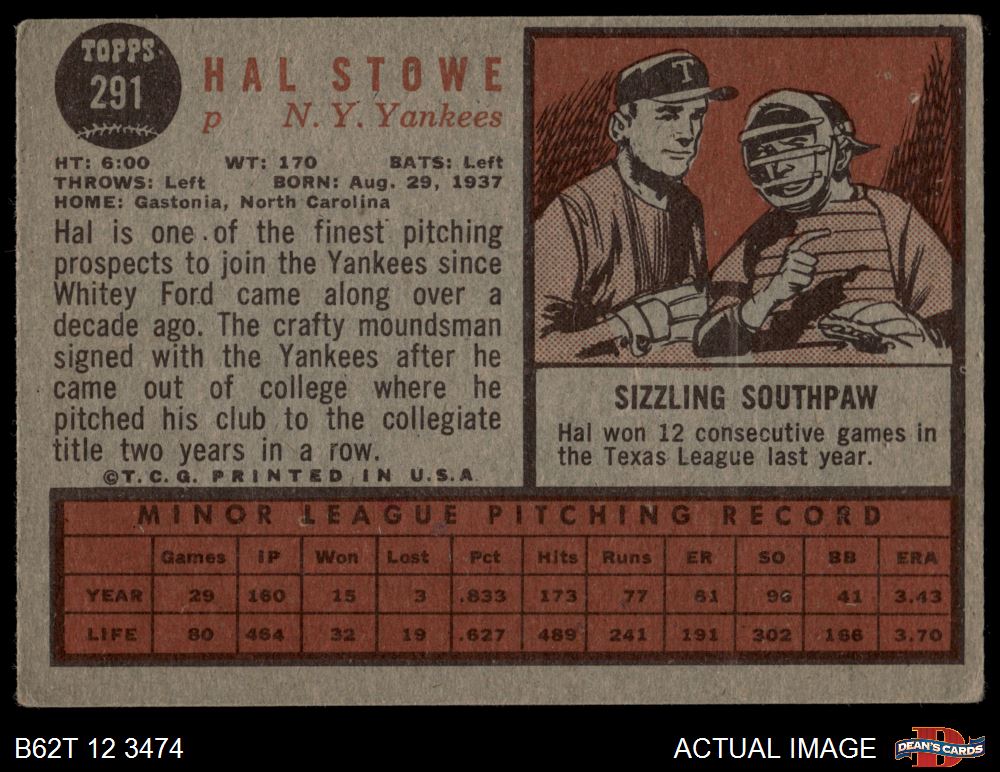 1962 Topps #291 Hal Stowe Front Thumbnail