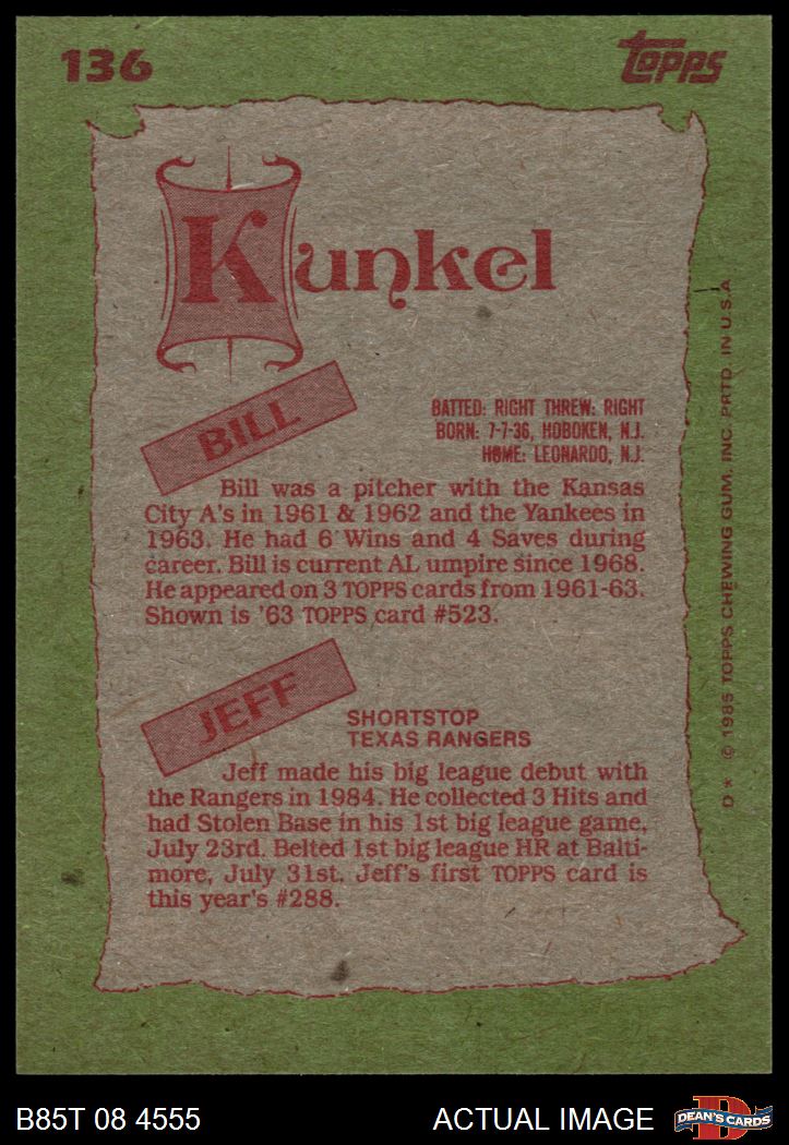 1985 Topps #136 - Jeff Kunkel / Bill Kunkel Father & Son 7 - NM