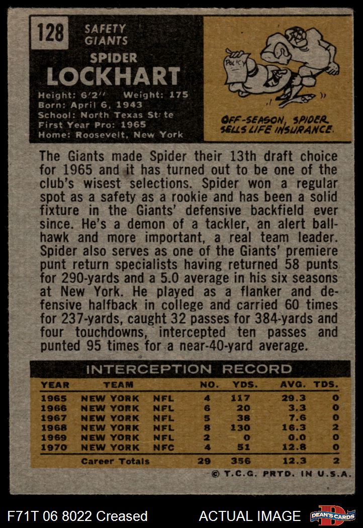 1971 Topps #128 Spider Lockhart 2 - GOOD
