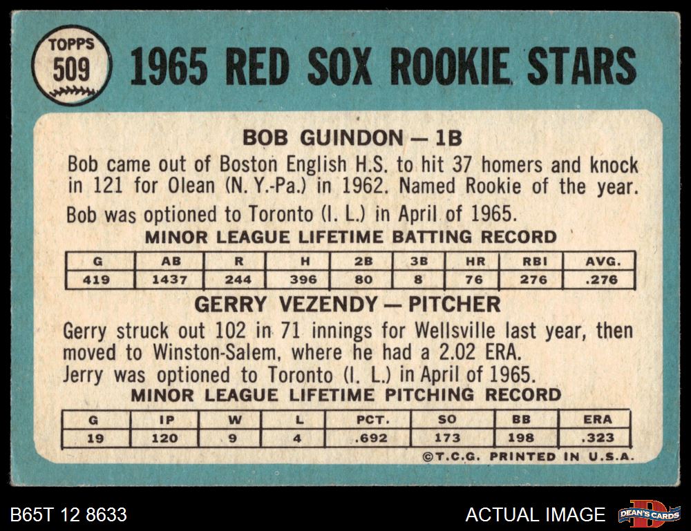 1965 Topps #509 - Bob Guindon / Gerry Vezendy Red Sox Rookies 2.5 - GD+