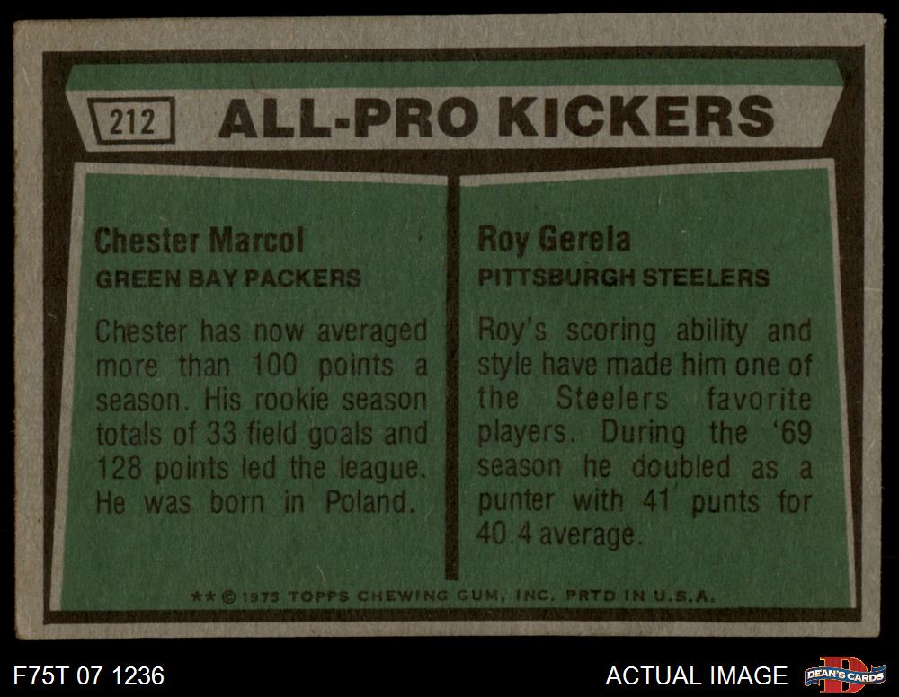 1975 Topps #212 - Chester Marcol / Roy Gerela All-Pro Kickers 1 - POOR