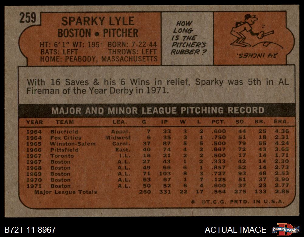 1972 Topps #259 Sparky Lyle 6 - EX/MT