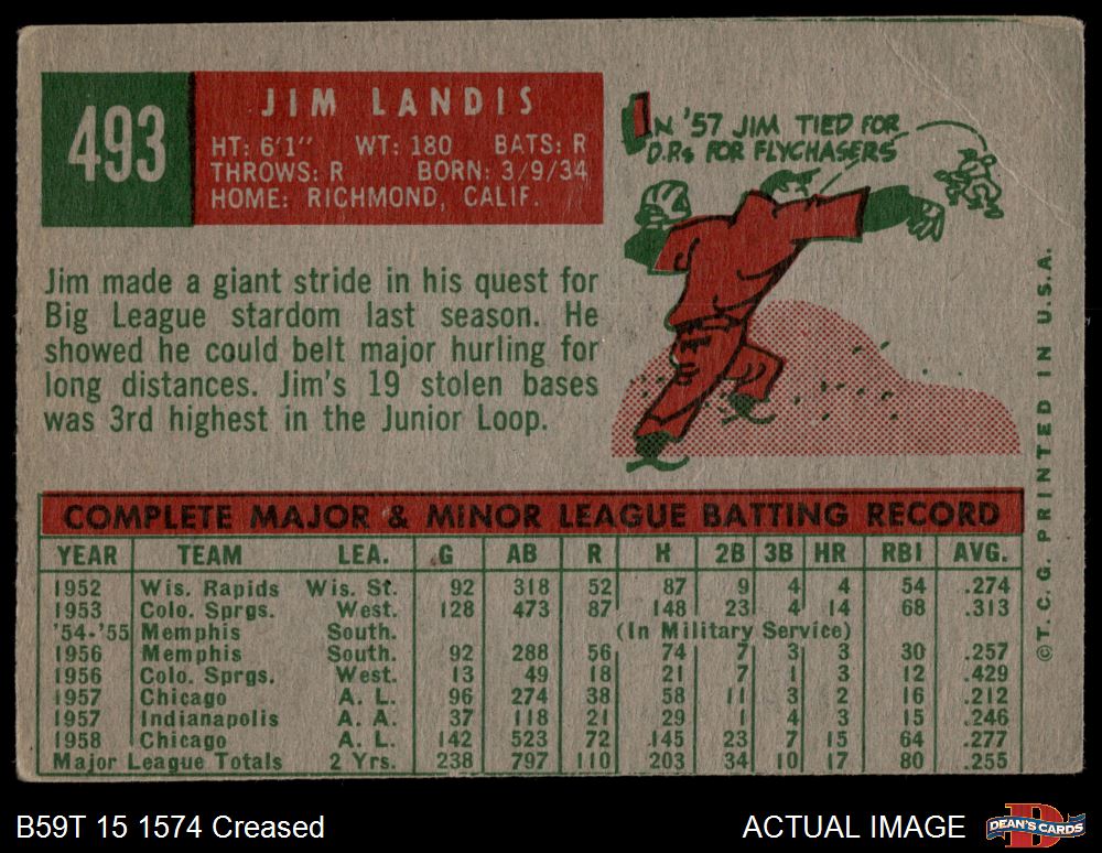 1959 Topps #493 Jim Landis 2 - GOOD