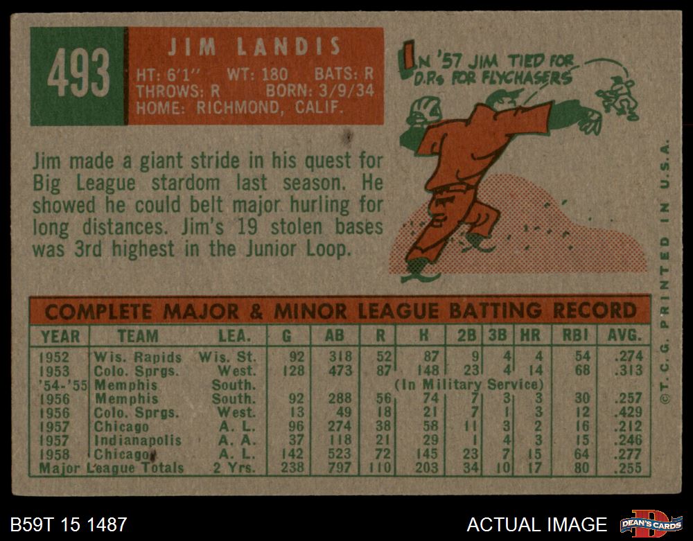 1959 Topps #493 Jim Landis 3 - VG