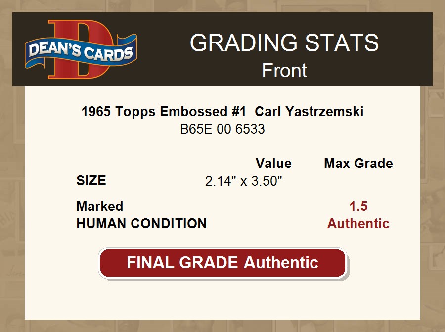 1965 Topps Embossed #1 Carl Yastrzemski AUTHENTIC
