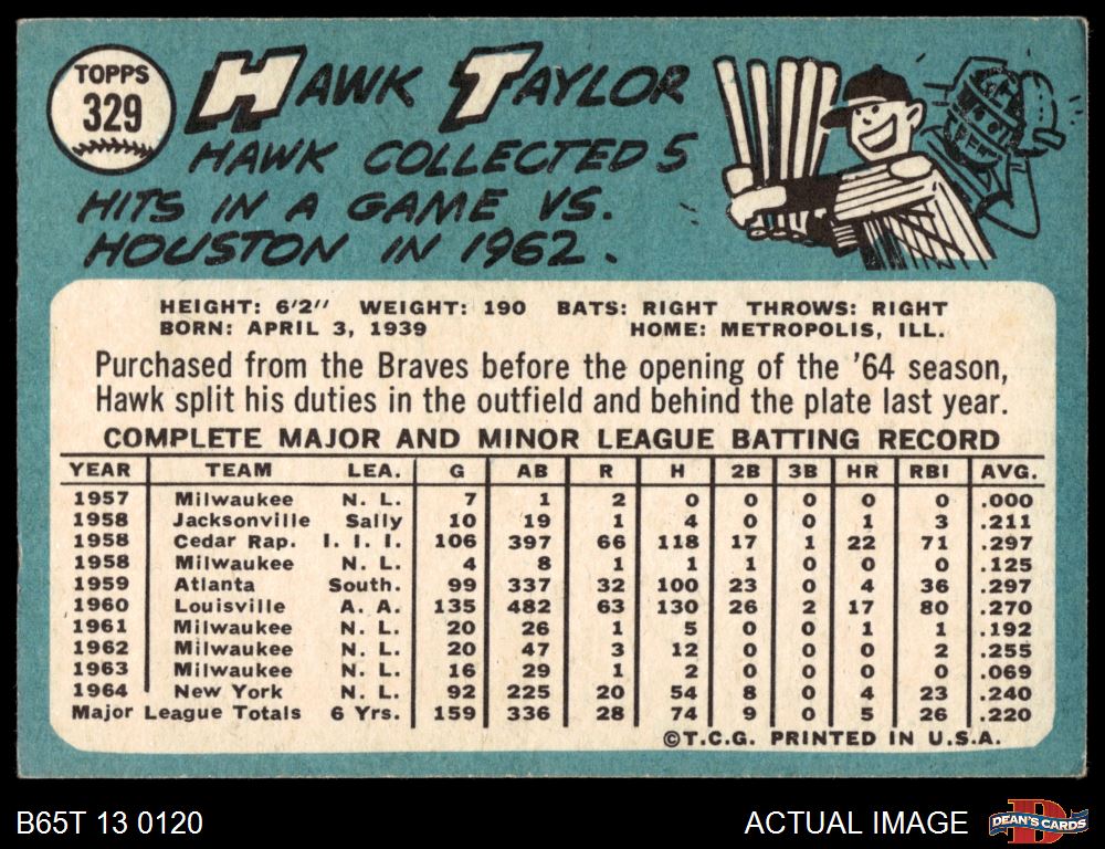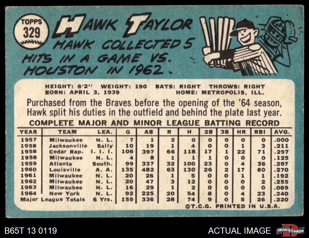 1965 Topps #329 Bob 'Hawk' Taylor 3.5 - VG+