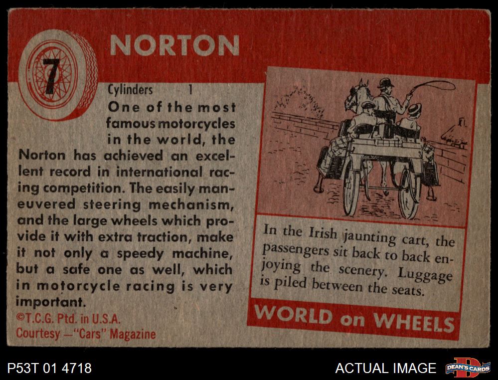 1954 Topps World on Wheels #7 Norton German Motorcycle 4 - VG/EX