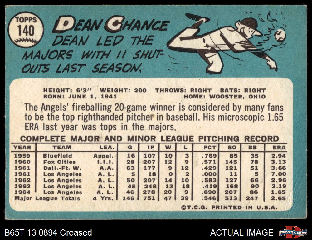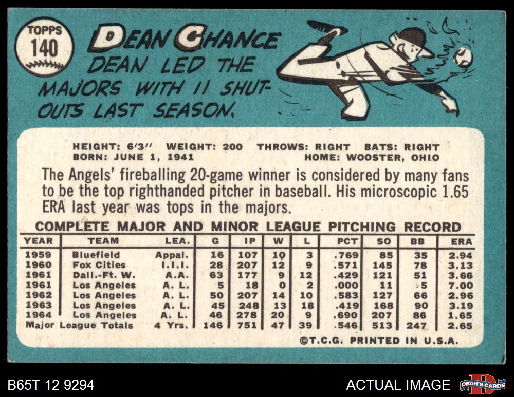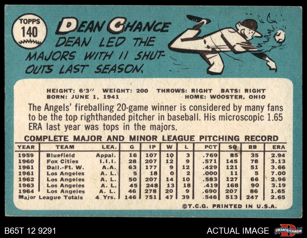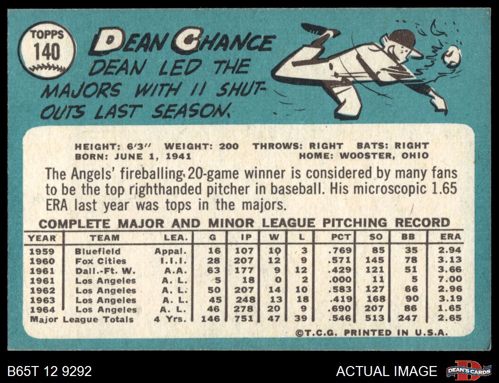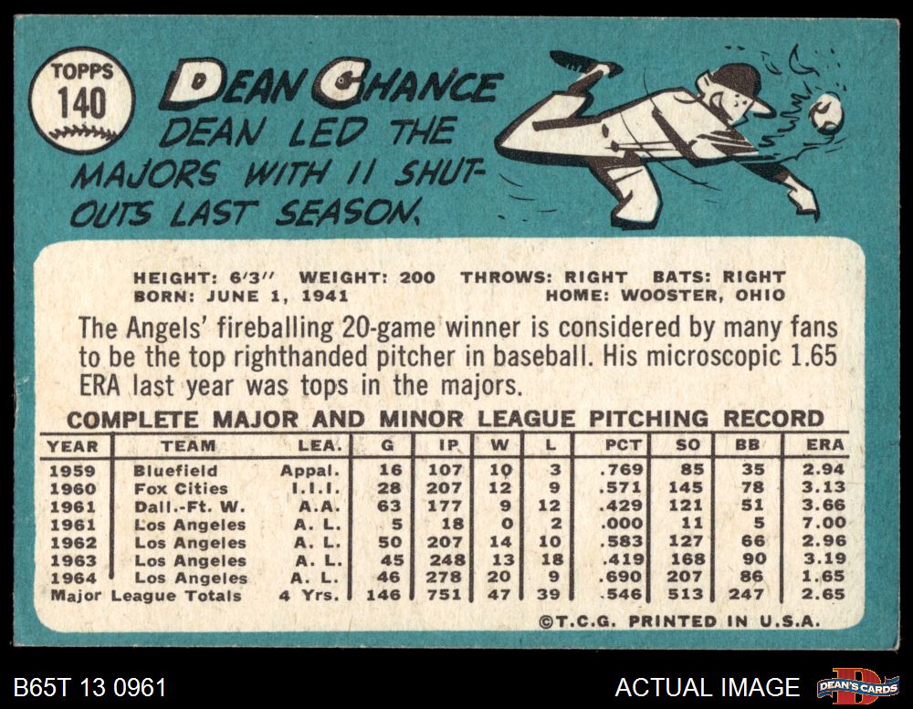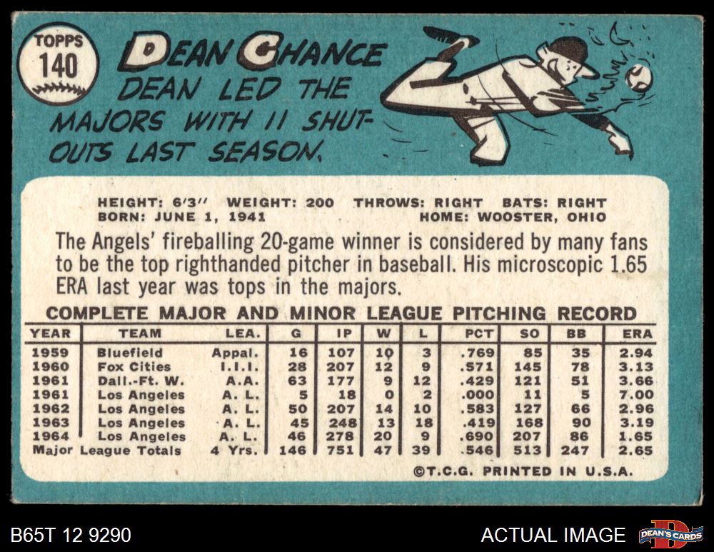 1965 Topps #140 Dean Chance