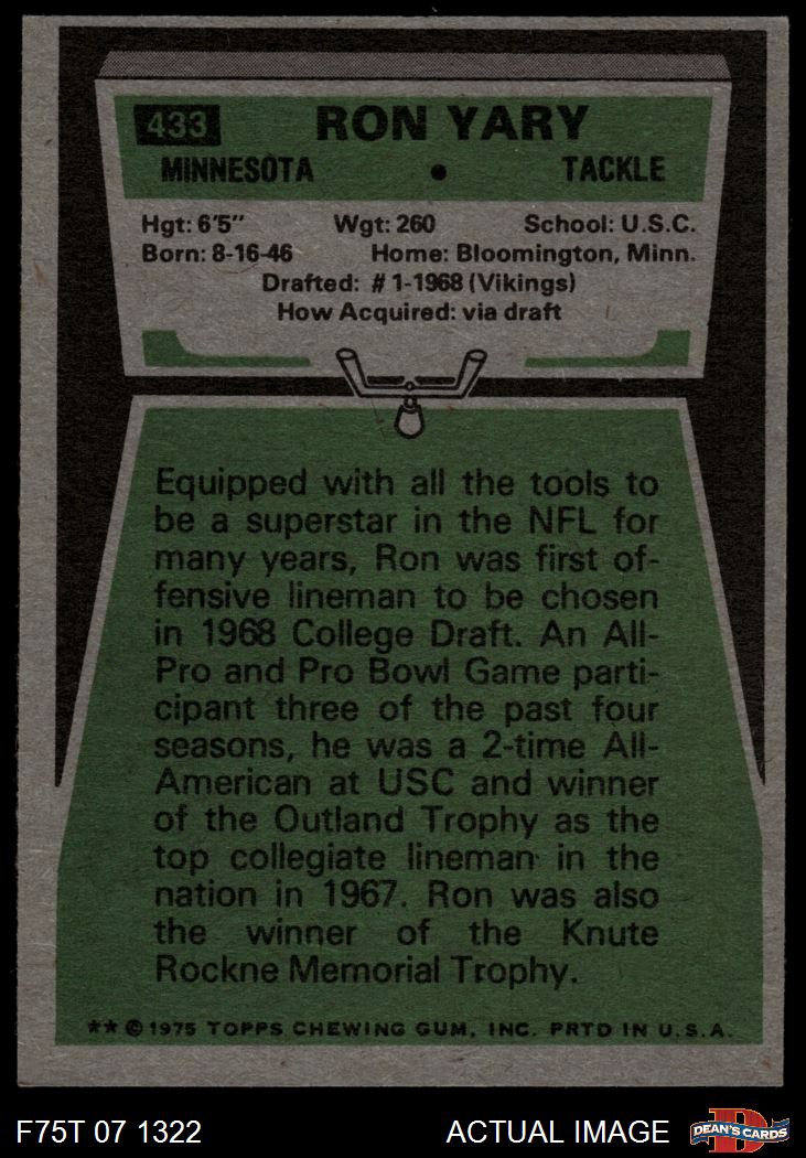 1975 Topps #433 Ron Yary 4 - VG/EX